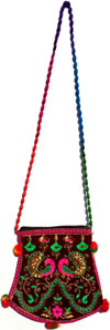 Colourful Hand Embroidered Pouch Handbag from India 100 % Cotton Fabric